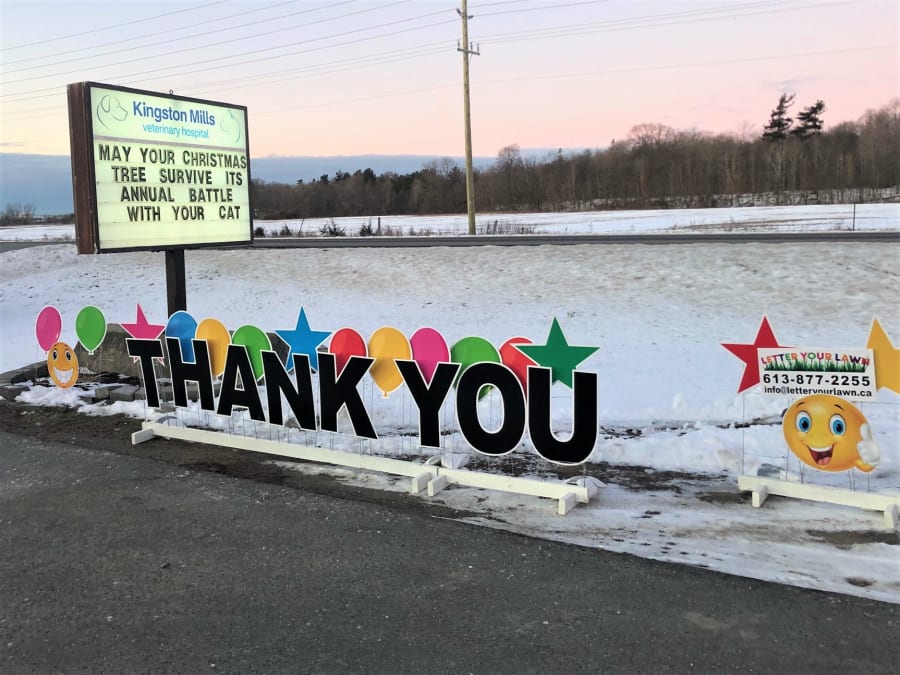 Delivery starts at $15 for Kingston and surrounding areas. Delivery includes setup and removal of the Letter Your Lawn custom sign. Delivery is available outside of these areas for an additional fee.